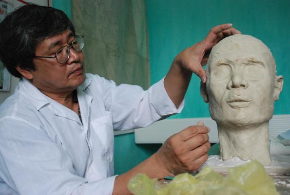 TS Nguyễn Việt đang phục dựng khuôn mặt người thời Lý để tạo ra một chân dung hoàn chỉnh